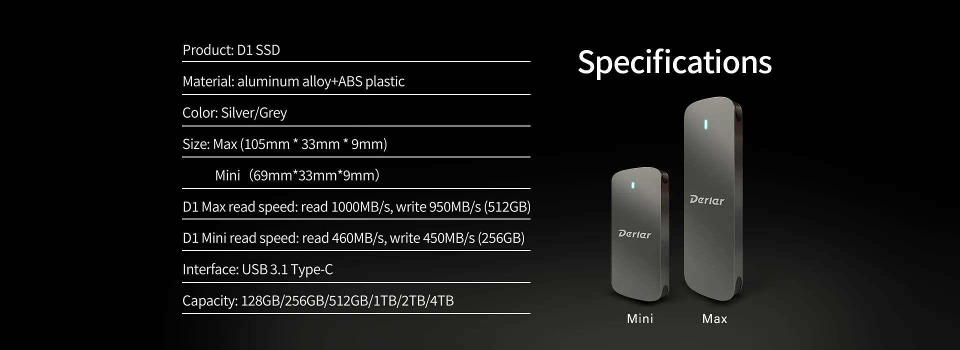 128GB 256GB 512GB 1TB 2TB